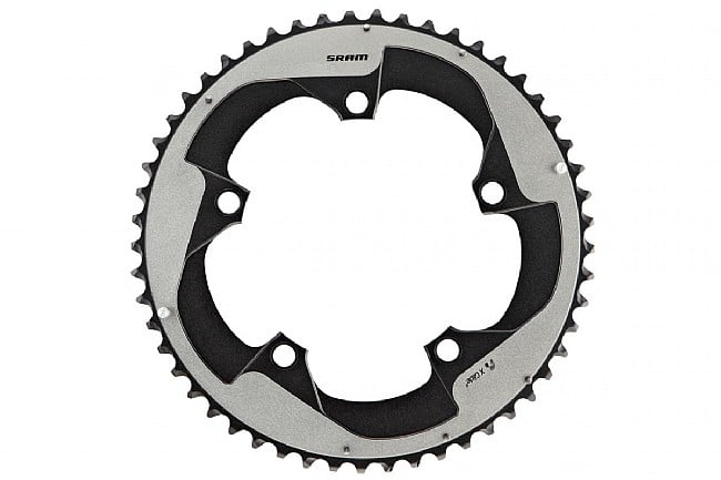 The SRAM 110 mm Red 22 Chainrings offer factory replacement options for Red 22 cranksets. These 5 mm thick CNC-machined alloy X-Glide chainrings provide optimized stiffness and shifting performance, with outer-ring specific ramps and pins to aid chain transition. These 11-speed chainrings work best with SRAM chains and SRAM Yaw front derailleurs.